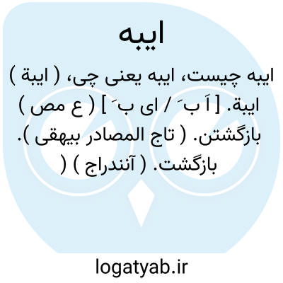 ( ایبة ) ایبة. [ اَ ب َ / ای ب َ ] ( ع مص ) بازگشتن. ( تاج المصادر بیهقی ). بازگشت. ( آنندراج ) ( منتهی الارب ). بازگشت و بازگشتن. ( یادداشت بخط مؤلف ). رجوع به اوب شود.