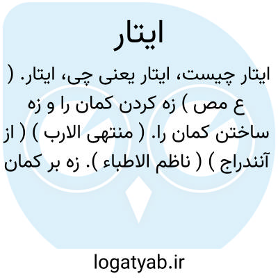 ایتار. ( ع مص ) زه کردن کمان را و زه ساختن کمان را. ( منتهی الارب ) ( از آنندراج ) ( ناظم الاطباء ). زه بر کمان کردن. ( المصادر زوزنی ) ( از اقرب الموارد ). || طاق گردانیدن جفت را. ( منتهی الارب ) ( آنندراج ) ( از ناظم الاطباء ). || نماز وتر گزاردن. ( منتهی الارب ) ( ناظم الاطباء )( آنندراج ) ( از اقرب الموارد ). || طاق گردانیدن چیزی را. ( منتهی الارب ) ( ناظم الاطباء ). طاق کردن نماز را. ( آنندراج ) ( منتهی الارب ) ( ناظم الاطباء ).