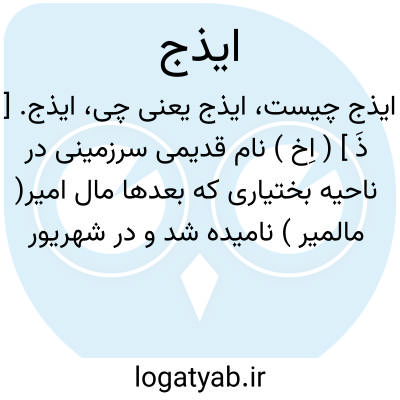 ایذج. [ ذَ ] ( اِخ ) نام قدیمی سرزمینی در ناحیه بختیاری که بعدها مال امیر( مالمیر ) نامیده شد و در شهریور 1314 هَ. ش.نام آن به ایذه تبدیل شد. و رجوع به ایذه شود: