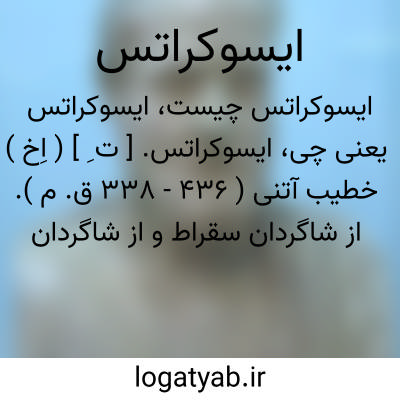 ایسوکراتس. [ ت ِ ] ( اِخ ) خطیب آتنی ( 436 - 338 ق. م ). از شاگردان سقراط و از شاگردان سوفسطائیان و احتمالاً بزرگترین معلم تاریخ یونان بود. مشهورترین خطبه او مدایح است که در آن یونانیان را باتحاد برضد ایرانیان میخواند. وی در باب اتحاد همه یونانیان برضد ایرانیان خطابه هایی ایراد میکرد ولی در اتحادبا مقدونیه خطری نمی دید. ایسوقراطس. رجوع به فرهنگ فارسی معین و دائرةالمعارف فارسی و کلمه قبل شود.