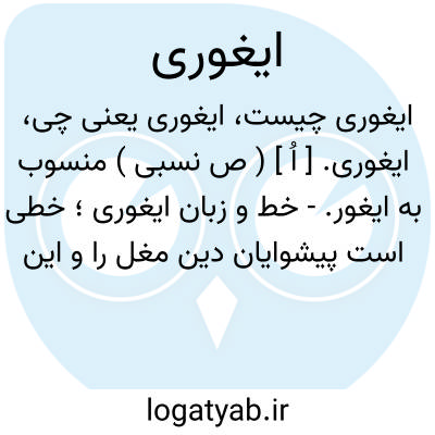 ایغوری. [ اُ ] ( ص نسبی ) منسوب به ایغور. - خط و زبان ایغوری؛ خطی است پیشوایان دین مغل را و این خط تا حدود قرن 15 م. در ترکستان متداول بوده است: برسبیل علامت به خط ایغوری التمغایی دادند. ( تاریخ جهانگشای جوینی ج 1 ص 114 ). زبان و خط ایغوری را فضل و هنر تمام شناسند. ( تاریخ جهانگشای ). کورکوز به تعلیم خط ایغوری مشغول شد. ( تاریخ جهانگشای جوینی ج 2 ص 226 ).