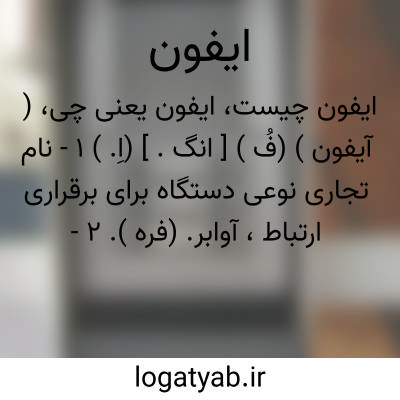 ( آیفون ) (فُ ) [ انگ. ] (اِ. ) ۱ - نام تجاری نوعی دستگاه برای برقراری ارتباط، آوابر. (فره ). ۲ - نوعی تلفن که برای مکالمه بین قسمت - های مختلف یک ساختمان به کار می رود.،~ تصویری نوعی در بازکن برقی که از طریق مانیتور آن می توان چهرة شخص را در بیرون از ساختمان