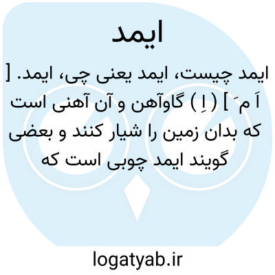 ایمد. [ اَ م َ ] ( اِ ) گاوآهن و آن آهنی است که بدان زمین را شیار کنند و بعضی گویند ایمد چوبی است که گاوآهن را بر آن نصب کنند و زمین را بشکافند و آنرا بعربی سنه خوانند. ( برهان ). آهن پاره ایست سرتیز که بدان زمین را بشکافند و آن را ایمر نیز گویند و یکی تصحیف است. ( انجمن آرا ) ( آنندراج ). گاوآهن و چوب گاوآهن. ( ناظم الاطباء ). آهن پاره ای سرتیز است که بر سر قلبه نصب کنند و بدان زمین را شیار کنند. ( جهانگیری ).فدان. ( السامی ): سکه و سنه؛ آهن ایمد. ( السامی ). طوق؛ آهن ایمد. ( السامی ). رجوع به ایمر و ایمید شود.