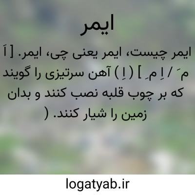 ایمر. [ اَ م َ / اِ م ِ ] ( اِ ) آهن سرتیزی را گویند که بر چوب قلبه نصب کنند و بدان زمین را شیار کنند. ( برهان ) ( هفت قلزم ). آهنی که بر آن چوب نصب کنند و زمین بدان شکافند و ایمد نیز گویند و بعربی سنه خوانند. ( رشیدی ). آلت آهنی که برزگران و کدیوران زمین را بدان شیار کنند و آنرا آهن جفت وایمد و سپار و ستار گویند. ( شرفنامه ) ( از مؤید الفضلا ). آهن سرتیزی که بر چوب قلبه نصب کنند و زمین را بدان شیار کنند. ( ناظم الاطباء ). رجوع به ایمد شود.