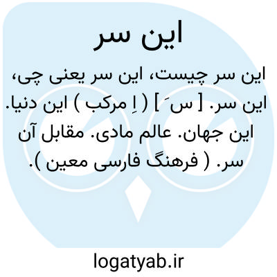 ( اسم ) این دنیا این جهان عالم مادی مقابل آن سر.