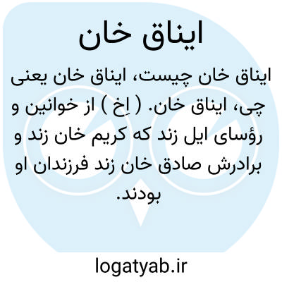 ایناق خان. ( اِخ ) از خوانین و رؤسای ایل زند که کریم خان زند و برادرش صادق خان زند فرزندان او بودند. بعد از مرگ ایناق زنش که مادر کریم خان و صادق خان بود بازدواج برادر بزرگتر یعنی بوداق خان درآمد و زکی خان زند از او بزاد. بنابراین زکی خان از جانب مادر برادر کریم خان و از جانب پدر عموزاده او بود. ( دائرة المعارف فارسی ).