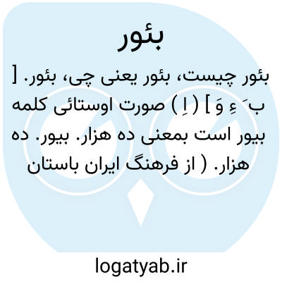 بئور. [ ب َ ءِ وَ ] ( اِ ) صورت اوستائی کلمه بیور است بمعنی ده هزار. بیور. ده هزار. ( از فرهنگ ایران باستان پورداود ص 31 ).