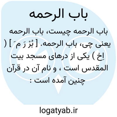 باب الرحمه. [ بُرْ رَ م َ ] ( اِخ ) یکی از درهای مسجد بیت المقدس است، و نام آن در قرآن چنین آمده است: «له باب باطنه فیه الرحمة و ظاهره من قبله العذاب » یعنی وادی جهنم که در جانب شرقی بیت المقدس است. ( عقد الفریدچ فرید چ مصر 1359 هَ. ق. ج 7ص 298 ) ( عیون الانباء ج 2 ص 122 ): و بر دیوار شرقی ( مسجد به بیت المقدس ) در میان جای مسجد درگاهی عظیم است به تکلف ساخته اند... و گویند این درگاه را سلیمان بن داود علیه السلام ساخته است ازبهر پدرش و چون بدرگاه درروند روی سوی مشرق از آن دو در آنچه بر دست راست است باب الرحمة گویند... ( سفرنامه ناصرخسرو چ برلین ص 33، 35 ). || دری بمکه معظمه:... و در آن خلوت که قفای حجرالاسود است دیبای سرخ درکشیده اند و چون از در خانه درروند بر دست راست زاویه خانه چهارسو کرده مقدار سه گز در سه گز و در آنجا درجه ایست که آن راه بام خانه است و دری نقرگین بیک طبقه بر آنجا نهاده و آنرا باب الرحمه خوانند و قفل نقرگین بر او نهاده باشد... ( سفرنامه ناصرخسرو چ برلین ص 109 ).