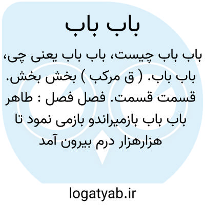 باب باب. ( ق مرکب ) بخش بخش. قسمت قسمت. فصل فصل: طاهر باب باب بازمیراندو بازمی نمود تا هزارهزار درم بیرون آمد که ابوسعید را هست و شانزده هزارهزار درم است که بر وی حاصل است و هیچ جای پیدا نیست. ( تاریخ بیهقی چ ادیب ص 125 ).