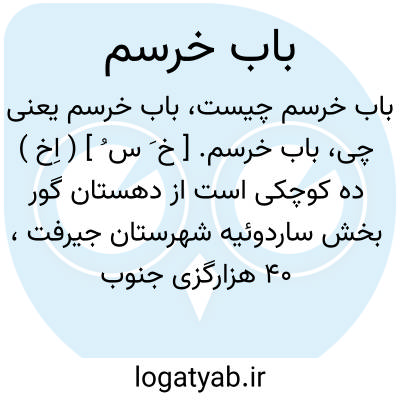 باب خرسم. [ خ َ س ُ ] ( اِخ ) ده کوچکی است از دهستان گور بخش ساردوئیه شهرستان جیرفت، 40 هزارگزی جنوب خاوری ساردوئیه و 8 هزارگزی شمال راه مالرو ساردوئیه به دارزین. سکنه آن 8 تن. ( فرهنگ جغرافیائی ایران ج 8 ).