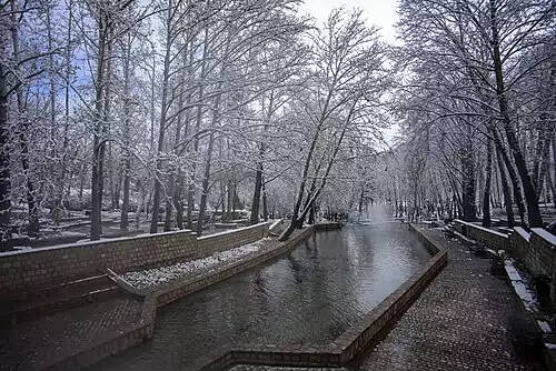 چشمه هایی در مرکز و اطراف تفرجگاه میجوشند. یکی از چشمه های این تفرجگاه، چشمه بابا امان نام دارد که از نوع آبهای معدنی محسوب می شود و ۳۰۰ الی ۴۰۰ لیتر در ثانیه دبی دارد. اب این چشمه از چهار نقطه درون تپه ای می جوشد و به درون استخرهایی می ریزد که با اختلاف سطح ساخته شده است. آب این چشمه ها جزو دسته آب های سولفاته کلسیک و سدیک هست و مصرف آن صفرا آور، ملین و تسهیل کننده اعمال گوارشی و دافع سموم است.