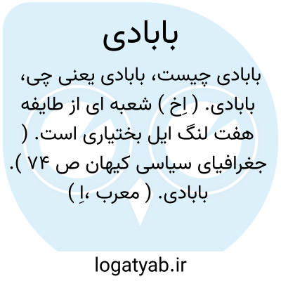 بابادی. ( اِخ ) شعبه ای از طایفه هفت لنگ ایل بختیاری است. ( جغرافیای سیاسی کیهان ص 74 ).