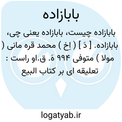 بابازاده. [ دَ ] ( اِخ ) محمد قره مانی ( مولا ) متوفی 994 هَ. ق.او راست: تعلیقه ای بر کتاب البیع هدایه مرغینانی. ( کشف الظنون چ 2 استانبول ستون 2036 و 2037 ).