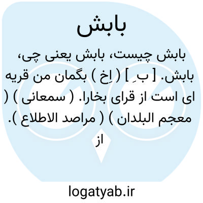 بابش. [ ب ِ ] ( اِخ ) بگمان من قریه ای است از قرای بخارا. ( سمعانی ) ( معجم البلدان ) ( مراصد الاطلاع ). از قراء بخارا است. ( احوال و اشعار رودکی، نفیسی ج 1 ص 45 ).