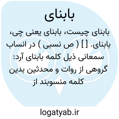 بابنای. [ ] ( ص نسبی ) در انساب سمعانی ذیل کلمه بابنای آرد: گروهی از روات و محدثین بدین کلمه منسوبند از قبیل ابوبکر عمربن نوح بن عباد نحروانی معروف بابن بابنای از مردم بغداد. رجوع به انساب سمعانی برگ 56 ب شود.
