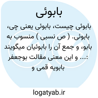 بابوئی. ( ص نسبی ) منسوب به بابو، و جمع آن را بابوئیان میگویند:... و این معنی مقالت بوجعفر بابویه قمی و همه بابوئیان است. ( کتاب النقض ص 574 ).
