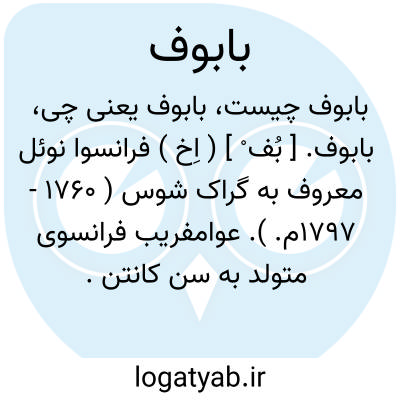 بابوف. [ بُف ْ ] ( اِخ ) فرانسوا نوئل معروف به گراک شوس ( 1760 - 1797م. ). عوامفریب فرانسوی متولد به سن کانتن. اوبمخالفت با دیرکتوار با عده ای از ژاکوبن ها متفق شد و محکوم به مرگ گردید. وی قبل از اعدام با خنجر خودکشی کرد. اصول عقیده اش که یک نوع کمونیسم است بنام بابوویسم نامیده میشود.