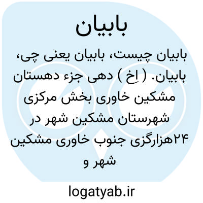 بابیان. ( اِخ ) دهی جزء دهستان مشکین خاوری بخش مرکزی شهرستان مشکین شهر در 24هزارگزی جنوب خاوری مشکین شهر و 10هزارگزی شوسه مشکین شهر به اردبیل. جلگه، معتدل. سکنه آن 121 تن و آب آن از چشمه ( کوه سبلان ).محصول آن غلات، حبوبات و شغل اهالی زراعت و گله داری است. راه مالرو دارد. ( فرهنگ جغرافیائی ایران ج 4 ).