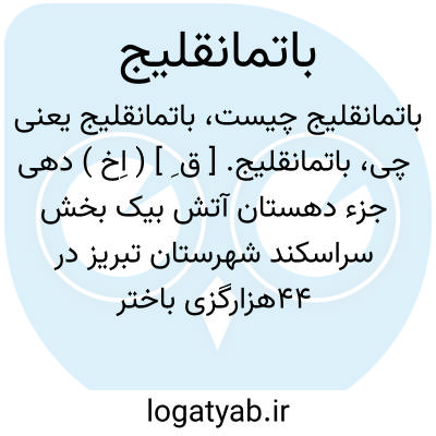 باتمانقلیج. [ ق ِ ] ( اِخ ) دهی جزء دهستان آتش بیک بخش سراسکند شهرستان تبریز در 44هزارگزی باختر مرکز بخش و 27هزارگزی خط آهن میانه - مراغه. کوهستانی، معتدل.سکنه آن 536 تن و آب آن از چشمه و رودخانه است. محصول آن غلات، حبوبات، پنبه و شغل اهالی زراعت و گله داری. راه مالرو دارد. ( فرهنگ جغرافیائی ایران ج 4 ).
