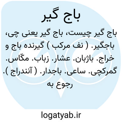 باجگیر. ( نف مرکب ) گیرنده باج و خراج. باژبان. عشار. زباب. مکّاس. گمرکچی. ساعی. باجدار. ( آنندراج ). رجوع به قاموس کتاب مقدس ذیل باجگیر شود.