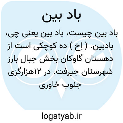 بادبین. ( اِخ ) ده کوچکی است از دهستان گاوکان بخش جبال بارز شهرستان جیرفت. در 12هزارگزی جنوب خاوری مسکون و 125هزارگزی شمال راه مالرو کروک به سبزواران واقع است و8 تن سکنه دارد. ( از فرهنگ جغرافیائی ایران ج 8 ).