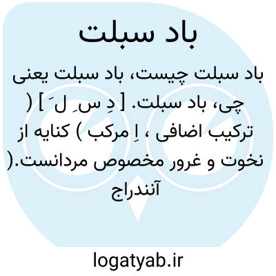باد سبلت. [ دِ س ِ ل َ ] ( ترکیب اضافی، اِ مرکب ) کنایه از نخوت و غرور مخصوص مردانست.( آنندراج: باد بروت، باد سبلت ). رجوع به باد شود.