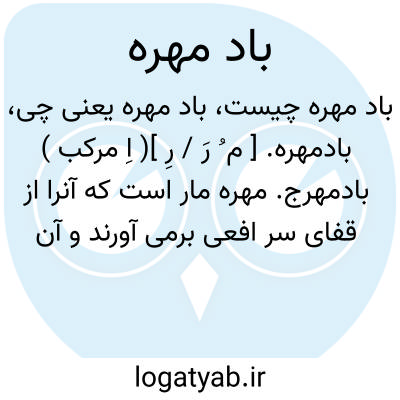 بادمهره. [ م ُ رَ / رِ ]( اِ مرکب ) بادمهرج. مهره مار است که آنرا از قفای سر افعی برمی آورند و آن سیاه رنگ میباشد. گویند اگر بر صوف سیاه یا کبود مالند سفید گردد. هرچند بشویند نرود و همچنان صوف داغدار بماند و امتحان آن به این است. و گزندگی مار را نافع است چون بر جائی که مار گزیده باشد بگذارند فی الحال بچسبد. ( برهان ) ( آنندراج ).و مؤلف انجمن آرا گوید: این موهومات برهانست. فادزهر. سم مار. ( ناظم الاطباء ) ( بحر الجواهر ). رجوع به مهره مار شود. || نام معجونی است از زرنباد، افیون، جندبیدستر، عاقرقرحا، پلپل، دارپلپل، هوم المجوس، بزر النبج الابیض و غیره. ( ذخیره خوارزمشاهی ). || عوام مهره سفیدی را گویند به اندام بلیله که شاطران بر پای خود بندند. ( برهان ) ( آنندراج ) ( انجمن آرا ). سفیدمهره. گوش ماهی. ( بحر الجواهر ).