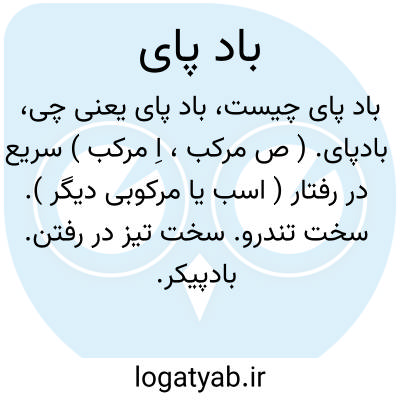 بادپای. ( ص مرکب، اِ مرکب ) سریع در رفتار ( اسب یا مرکوبی دیگر ). سخت تندرو. سخت تیز در رفتن. بادپیکر. بادپیما. رجوع به بادپیکر و بادپیما شود:
