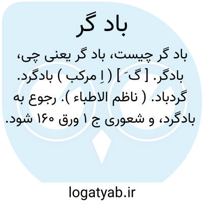 بادگر. [ گ َ ] ( اِ مرکب ) بادگرد. گردباد. ( ناظم الاطباء ). رجوع به بادگرد، و شعوری ج 1 ورق 160 شود.