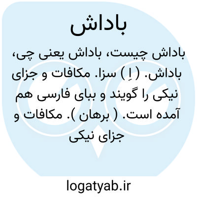 باداش. ( اِ ) سزا. مکافات و جزای نیکی را گویند و ببای فارسی هم آمده است. ( برهان ). مکافات و جزای نیکی را گویند و ببای فارسی هم آمده است و آنرا پاداشن بزیادتی نون در آخر نیز گفته اند، فرخی گفته: