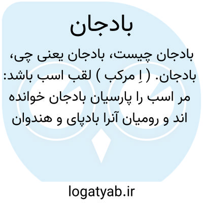 بادجان. ( اِ مرکب ) لقب اسب باشد: مر اسب را پارسیان بادجان خوانده اند و رومیان آنرا بادپای و هندوان تخت پران و تازیان براق زمین. ( نوروزنامه ). رجوع به بادپای و بادپیکر شود.