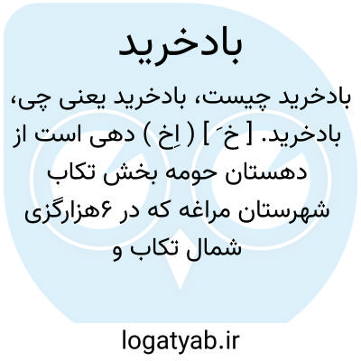 بادخرید. [ خ َ ] ( اِخ ) دهی است از دهستان حومه بخش تکاب شهرستان مراغه که در 6هزارگزی شمال تکاب و 2هزارگزی خاور راه ارابه رو تکاب بصائین دژ در دره قرار دارد. هوایش معتدل و سالم است. دارای 204 تن سکنه میباشد که بزبان کردی سخن میگویند. آبش از چشمه و محصولش غلات، بادام، حبوبات، کرچک و شغل مردمش زراعت و گله داری و صنایع دستی اهالی جاجیم بافی وراهش مالرو است. ( از فرهنگ جغرافیائی ایران ج 4 ).