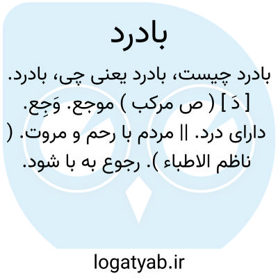 بادرد. [ دَ ] ( ص مرکب ) موجع. وَجِع. دارای درد. || مردم با رحم و مروت. ( ناظم الاطباء ). رجوع به با شود.