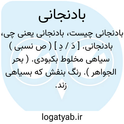 بادنجانی. [ دَ / دِ ] ( ص نسبی ) سیاهی مخلوط بکبودی. ( بحر الجواهر ). رنگ بنفش که بسیاهی زند.