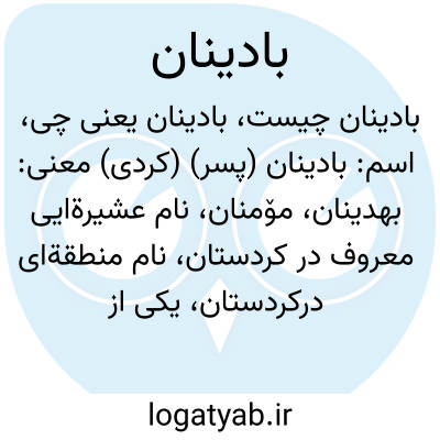 معنی: بهدینان، مۆمنان، نام عشیرةایی معروف در کردستان، نام منطقةای درکردستان، یکی از لهجةهای زبان کردی ( نگارش کردی