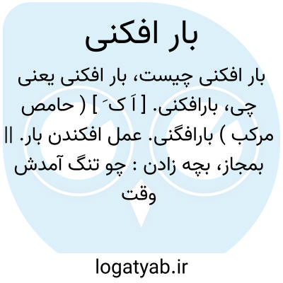بارافکنی. [ اَ ک َ ] ( حامص مرکب ) بارافگنی. عمل افکندن بار. || بمجاز، بچه زادن: