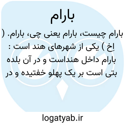بارام. ( اِخ ) یکی از شهرهای هند است: بارام داخل هنداست و در آن بلده بتی است بر یک پهلو خفتیده و در بعضی از سنوات بی متحرکی بر پای ایستد و ازو صدائی ظاهر میشود و این معنی علامت ارزانی و رفاهیت باشد و درسالی که این حرکت از آن بت صادر نگردد در آن شهر قحط و غلاء وقوع یابد. ( حبیب السیر چ خیام ج 4 ص 625 ).
