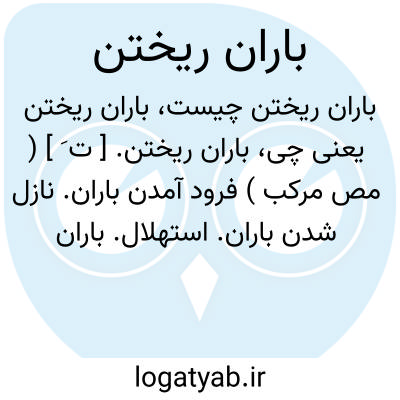 باران ریختن. [ ت َ ] ( مص مرکب ) فرود آمدن باران. نازل شدن باران. استهلال. باران ریختن آسمان: