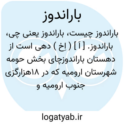 باراندوز. [ اَ ] ( اِخ ) دهی است از دهستان باراندوزچای بخش حومه شهرستان ارومیه که در 18هزارگزی جنوب ارومیه و 5500 گزی باختر شوسه ارومیه بمهاباد در جلگه واقع است. هوایش معتدل و دارای 426 تن سکنه میباشد. آبش از باراندوزچای و محصولش غلات، انگور، توتون، چغندر، حبوبات، برنج و شغل مردمش زراعت و صنایع دستی اهالی جوراب بافی است و راهش ارابه رو می باشد. دبستان دارد. ( از فرهنگ جغرافیائی ایران ج 4 ).