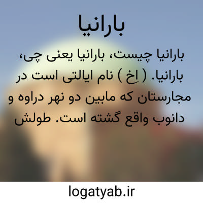 بارانیا. ( اِخ ) نام ایالتی است در مجارستان که مابین دو نهر دراوه و دانوب واقع گشته است. طولش 88 و عرضش 66 هزارگز میباشد. و مرکزش قصبه فنف کیرْش ( یعنی پنج کلیسا ) میباشد. ( از قاموس الاعلام ترکی ج 2 ).