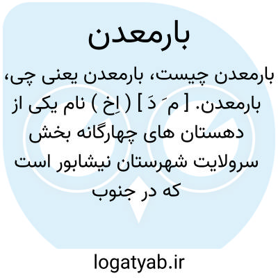 بارمعدن. [ م َ دَ ] ( اِخ ) نام یکی از دهستان های چهارگانه بخش سرولایت شهرستان نیشابور است که در جنوب دهستان دربقاضی و شمال دهستان طاغنکوه شمال و جنوب شوسه عمومی نیشابور به سبزوار واقع است و از 21 آبادی تشکیل میشود و دارای 6926 تن جمعیت میباشد. قراء مهمش عبارتند از: معدن، مرکز دهستان با 1412 تن سکنه و سرچاه، با 1127 تن سکنه. معدن سنگ آسیا در قراء تابعه و معدن فیروزه در خودمعدن وجود دارد. ( از فرهنگ جغرافیائی ایران ج 9 ).