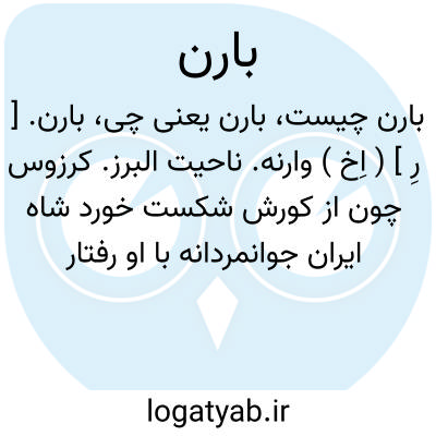 بارن. [ رِ ] ( اِخ ) وارنه. ناحیت البرز. کرزوس چون از کورش شکست خورد شاه ایران جوانمردانه با او رفتار کرد و قسمتی از داراییش را بدو بازگردانید و شهر بارن را نیز به وی بخشید. رجوع به ایران باستان ج 1 ص 279 و 285 شود.