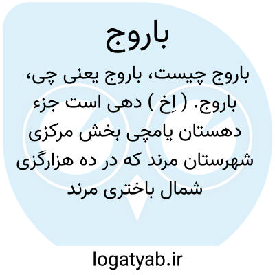 باروج. ( اِخ ) دهی است جزء دهستان یامچی بخش مرکزی شهرستان مرند که در ده هزارگزی شمال باختری مرند و 4 هزارگزی راه آهن جلفا به مرند در جلگه واقع است. هوایش معتدل و دارای 650 تن سکنه میباشد. آبش از رودخانه و محصولش غلات، پنبه و شغل مردمش زراعت و گله داری وراهش مالرو است. ( از فرهنگ جغرافیائی ایران ج 4 ).