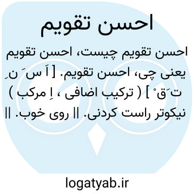 احسن تقویم. [ اَ س َ ن ِ ت َق ْ ] ( ترکیب اضافی، اِ مرکب ) نیکوتر راست کردنی. || روی خوب. || راست قامت: لقد خلقنا الانسان فی احسن تقویم. ( قرآن 4/95 ). بهترین تعدیل. نیکوتر ترکیب. ( تفسیر ابوالفتوح ).