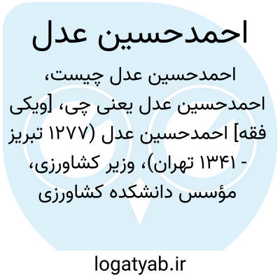 [ویکی فقه] احمدحسین عدل (۱۲۷۷ تبریز - ۱۳۴۱ تهران)، وزیر کشاورزی، مؤسس دانشکده کشاورزی کرج و یکی از بنیان گذاران کشاورزی جدید ایران است. او سه بار در کابینه های مختلف قوام السلطنه و یک بار در کابینه حکیم الملک و یک بار کابینه سپهبد زاهدی به مقام وزارت کشاورزی منصوب شده و همچنین ریاست سندیکای صاحبان صنایع اصفهان را بر عهده داشته است.