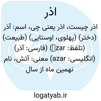 اسم: آذر (دختر) (پهلوی، اوستایی) (طبیعت) (تلفظ: āzar) (فارسی: آذر) (انگلیسی: azar)