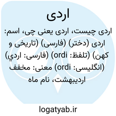 اسم: اردی (دختر) (فارسی) (تاریخی و کهن) (تلفظ: ordi) (فارسی: اردي) (انگلیسی: ordi)