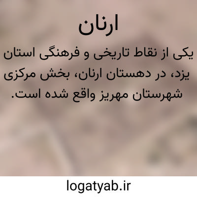 یکی از نقاط تاریخی و فرهنگی استان یزد، در دهستان ارنان، بخش مرکزی شهرستان مهریز واقع شده است. این روستا دارای جاذبههای گردشگری منحصربهفردی است که قدمت تاریخی آن را به طور چشمگیری نمایان میسازد. از جمله مهمترین این جاذبهها، سنگنگارههای کوه ارنان هستند که قدمت آنها به حدود ۱۵۰۰ سال پیش از میلاد مسیح بازمیگردد. این آثار ارزشمند باستانشناسی، مورد توجه بسیاری از پژوهشگران و گردشگران قرار گرفتهاند؛ بهطوری که باور مردم بومی بر این است که این حکاکیها توسط انسانهای نخستین بر پیکره کوه به یادگار گذاشته شدهاند.