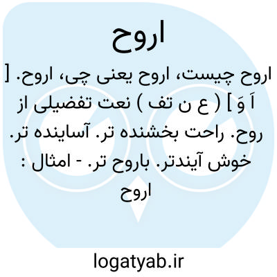 اروح. [ اَ وَ ] ( ع ن تف ) نعت تفضیلی از روح. راحت بخشنده تر. آساینده تر. خوش آیندتر. باروح تر.