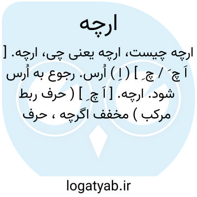 ارچه. [ اَ چ ِ ] ( حرف ربط مرکب ) مخفف اگرچه، حرف شرط. هرچند. وقتی هم که: